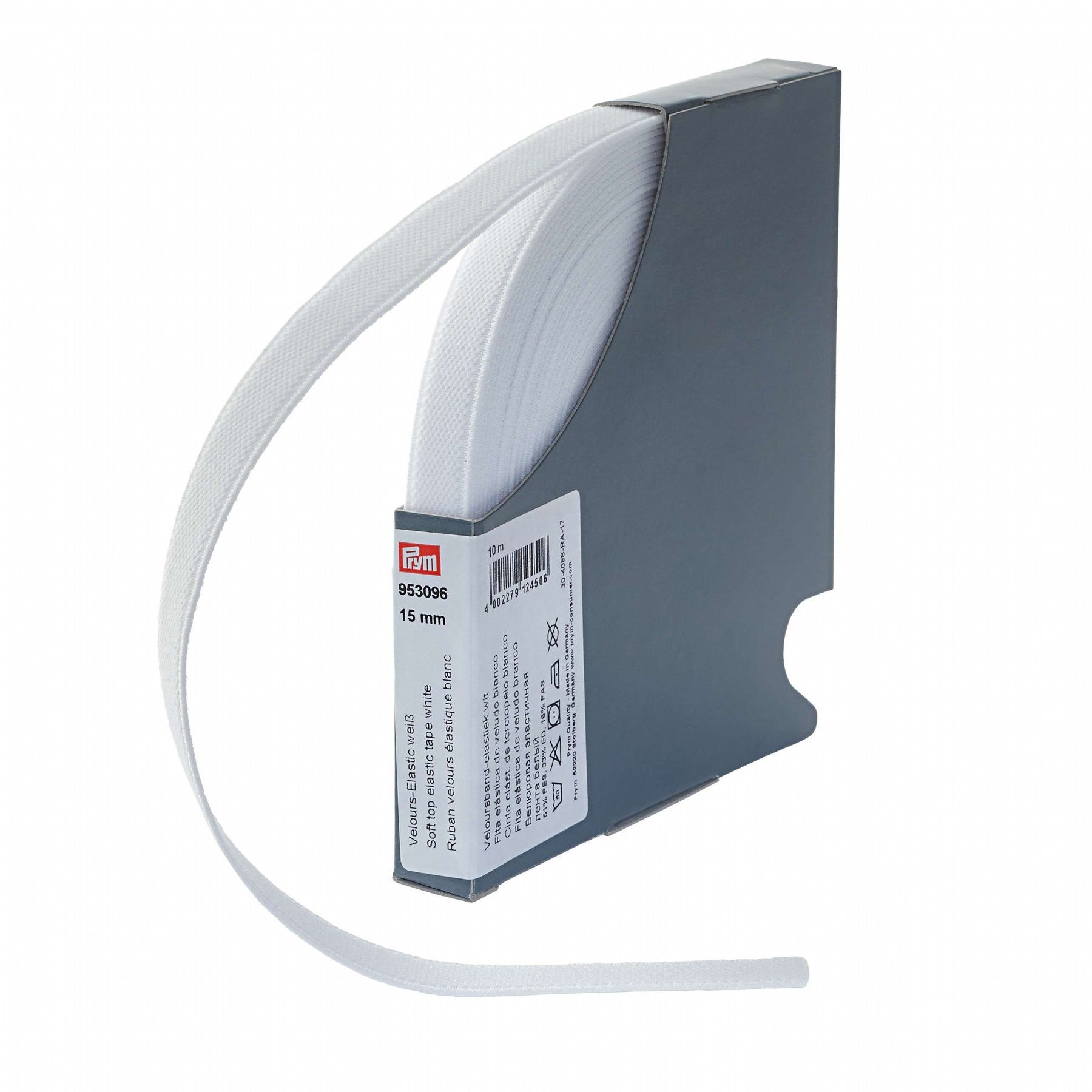 15mm wide white Prym soft top elastic, perfect for waistbands, cuffs, and garment finishing. Sold by the metre with a smooth, comfortable feel against skin. Order multiple metres and receive as one continuous length for seamless projects. Ideal for dressmaking, alterations, and craft applications.