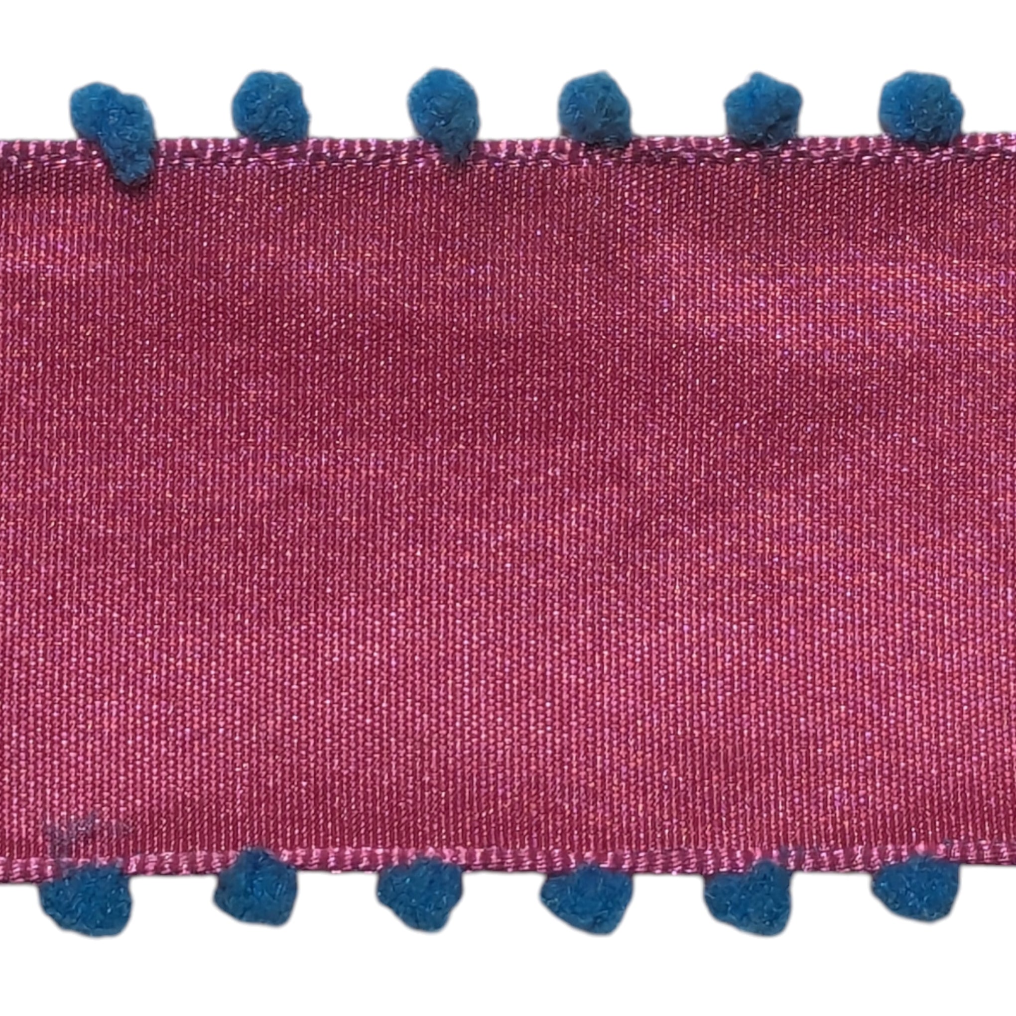 Pom Pom Edge on 1.5″ Solid Ribbon (Wired Edge) - Choice of Colours